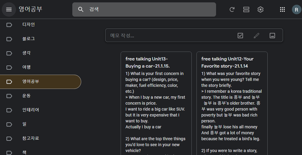 구글 킵 메모장 리뷰는 나중에 하기로 하고.